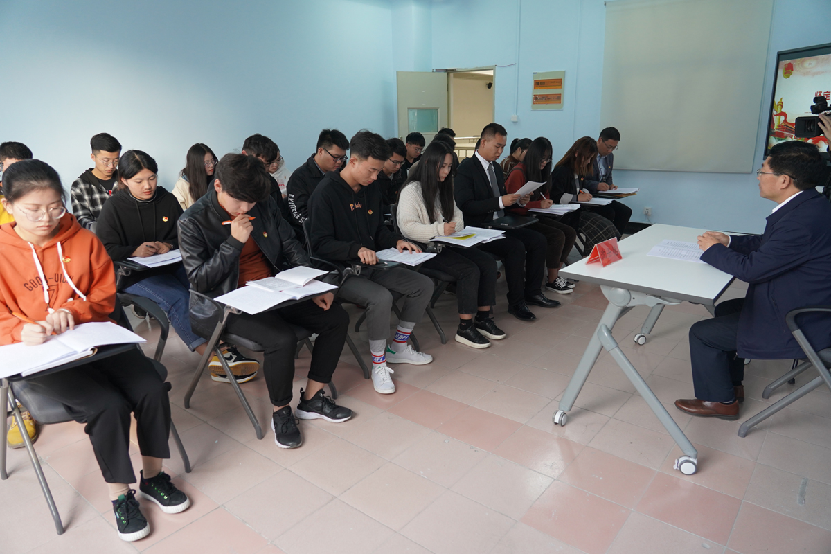 学员代表路桥18-2班张新鹏、软件18-3班吴雨、电商18-1班杨之鹏、建工18-1班胡文豪等四位同学先后发言,从不同的视角表达了当代青年的奋斗使命与时代决心。