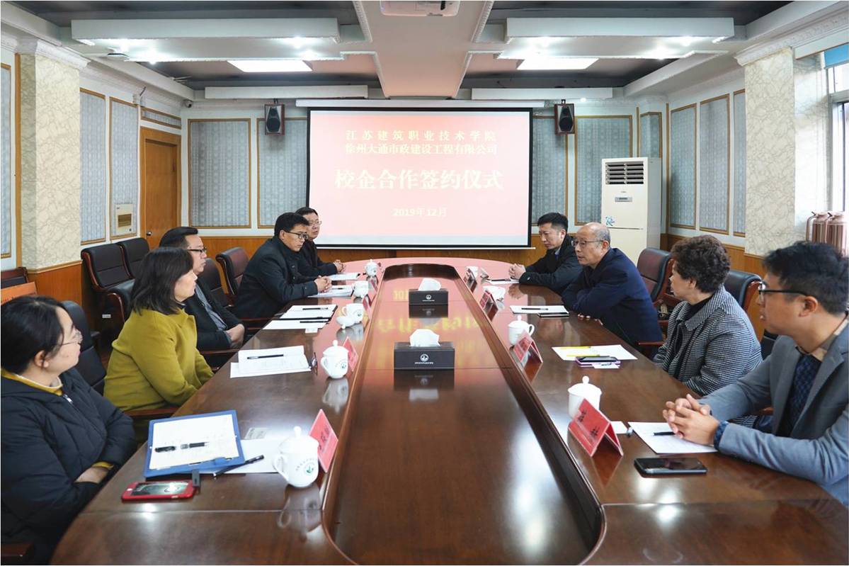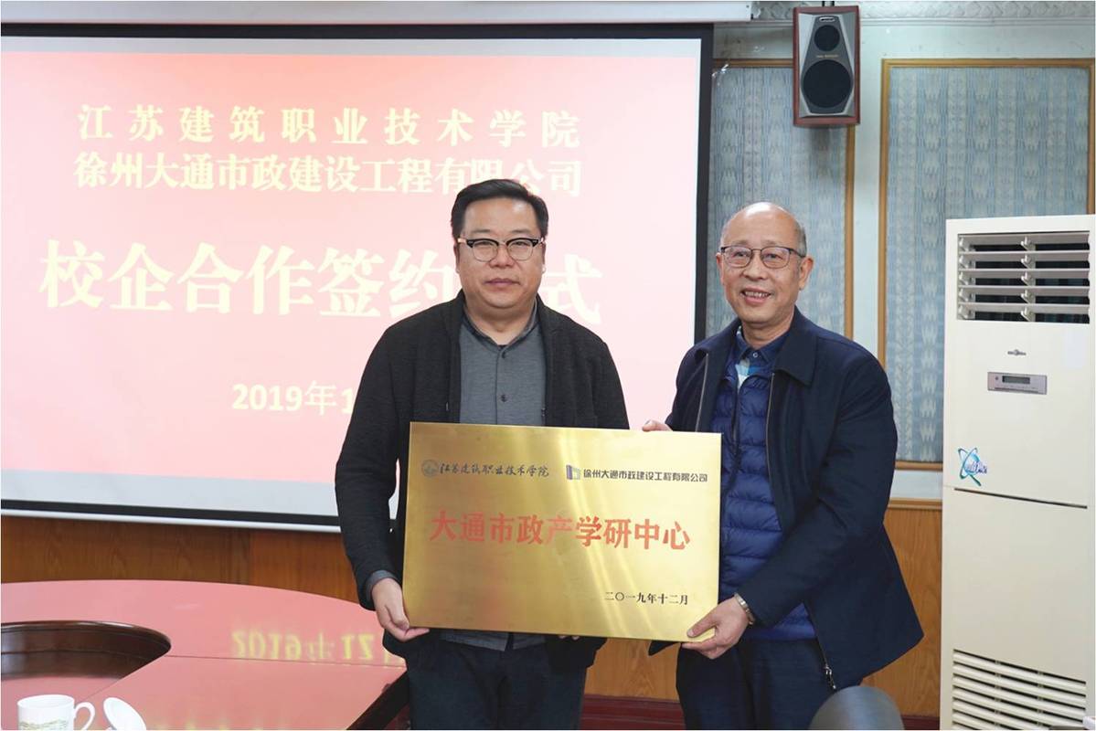 12月5日上午,我校与徐州大通市政建设工程有限公司在第二会议室举行校企合作签约仪式。副院长刘海波与大通市政公司董事长薛玉仁共同签约、授牌。校企合作处、交通工程学院相关负责人出席签约仪式。