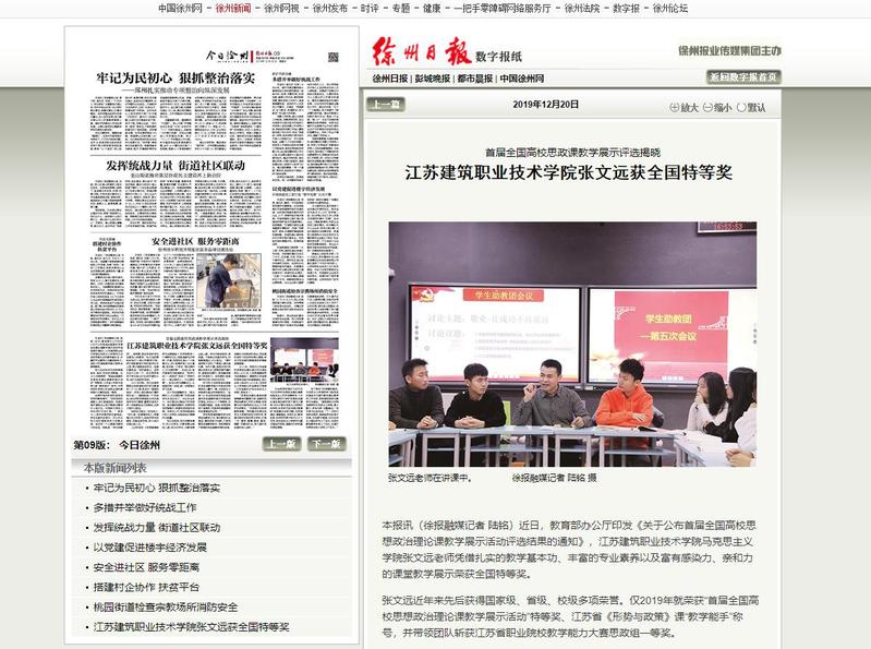 张文远近年来先后获得国家级、省级、校级多项荣誉。仅2019年就荣获“首届全国高校思想政治理论课教学展示活动”特等奖、江苏省《形势与政策》课“教学能手”称号,并带领团队斩获江苏省职业院校教学能力大赛思政组一等奖。