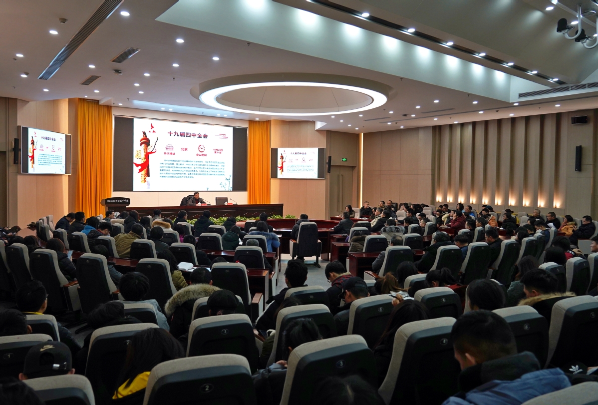 12月24日下午,学习贯彻党的十九届四中全会精神市委宣讲团成员、中国矿业大学党委宣传部部长、马克思主义学院党委书记熊志忠,到我校作了题为《从中国之制到中国之治》的主题宣讲报告。校领导,机关第一党总支、机关第二党总支、马克思主义学院全体教师,各民主党派负责人、青马班学员等近300名师生聆听了报告。纪委书记魏勇主持报告会。