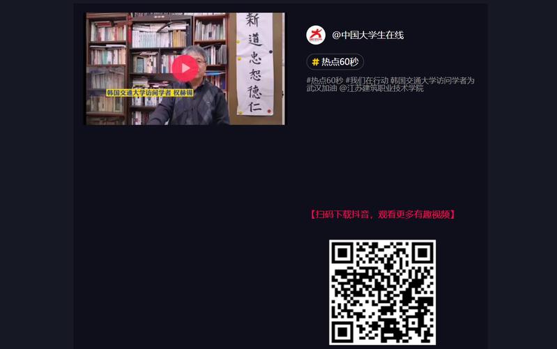 #热点60秒 #我们在行动 韩国交通大学访问学者为武汉加油 @开云在线平台
