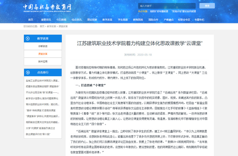 “近闻远说”微宣讲在课堂上一推出,立即收到了很多学生的反馈。建工19-5班王鑫同学说:“本以为上网课就是老师放放视频,没想到张老师如此走心,能看出来他是下了很多功夫想把网课上好。不仅教学形式多样,而且真正触动了我们的内心,加上我们可以在腾讯课堂评论区自由发言,我爱上了张老师的课。”数媒19-1班姚朔同学说:“去年就听说学校有名获得全国特等奖的老师,没想到今年教我们,更没想到的是,他的网课居然这么精彩,特别期待开学后能在教室里面对面听他讲课。”