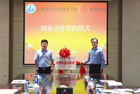6月29日下午,我校与苏州高新(徐州)商旅发展有限公司举行徐州乐园订单班揭牌暨校企合作签约仪式。院长沈士德教授、苏州高新(徐州)商旅发展有限公司经理金宗韬先生出席仪式,共同为徐州乐园订单班揭牌。校企合作处和经济管理学院相关人员参加了此次签约。