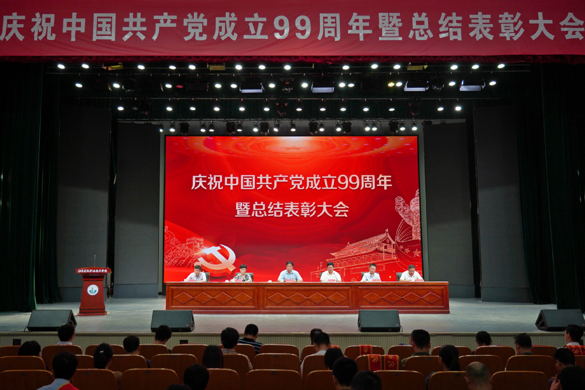 7月1日上午,我校庆祝中国共产党成立99周年暨总结表彰大会在会堂隆重举行。校领导孙进、沈士德、梁惠、魏勇、曾凡远、蒋兆峰出席大会。全体教职工党员、离退休党员代表参加大会。会议由院长沈士德教授主持。