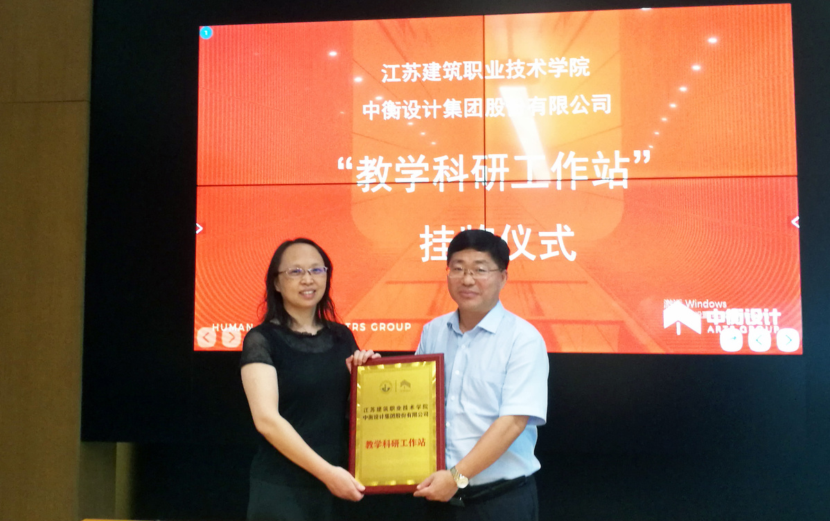 会上,沈士德为中衡设计集团股份有限公司颁发了“教学科研工作站”牌匾。
