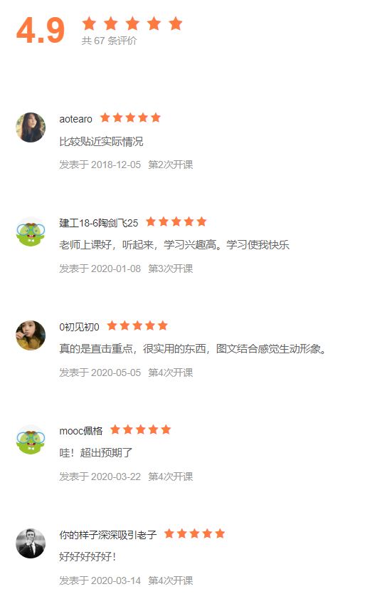 (慕课平台学生评价图)