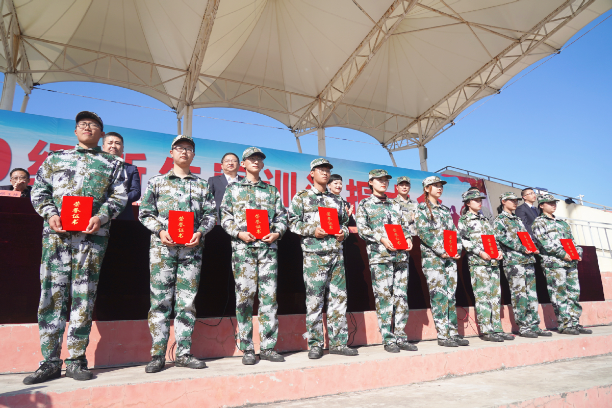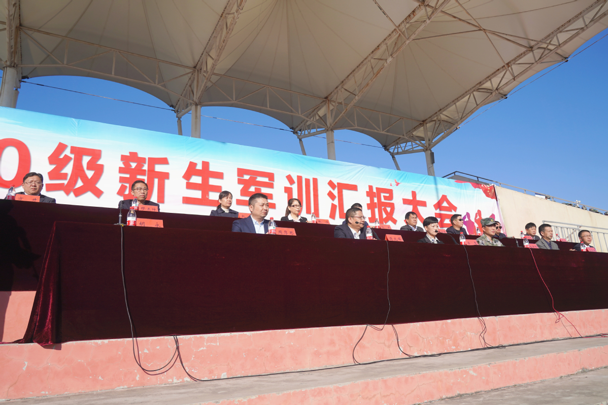 10月24日上午,我校2020级新生军训汇报大会在西操场隆重举行。党委副书记梁惠、承训部队政治部主任陆井锋、副院长蒋兆峰出席大会。相关职能部门领导、二级学院领导、全体承训教官和5168名参训新生参加了大会。大会由学工处处长胡永主持。