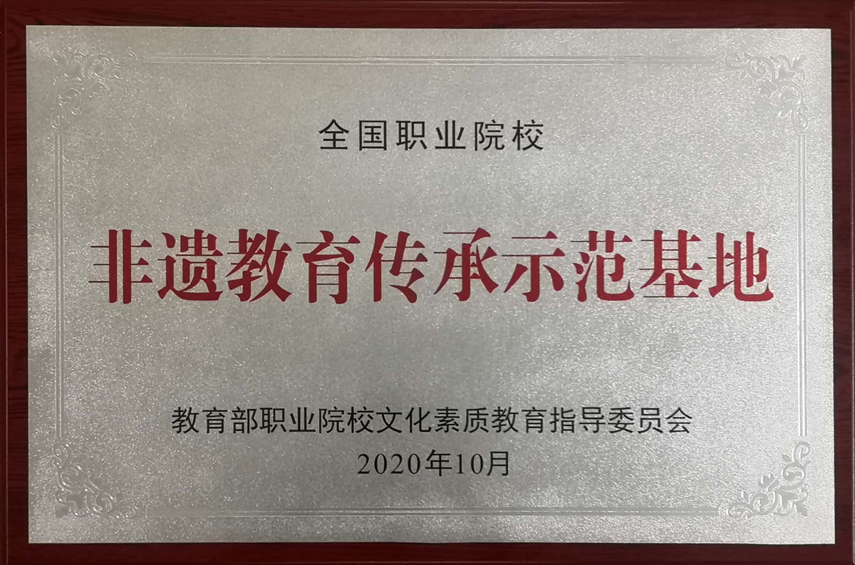 2020年10月24日-25日,由教育部职业院校文化素质教育指导委员会主办的以“传承、创新、筑梦”为主题的全国职业院校传统技艺传承与发展研讨会在湖南长沙举行。会上,我校提交了“五育并举视域下高校文化育人路径创新”论文和“礼射文化传承与弘扬”案例,经过专家评议,教育部职业院校文化素质教育指导委员会审定,我校被授予全国职业院校“非遗教育传承示范基地”。