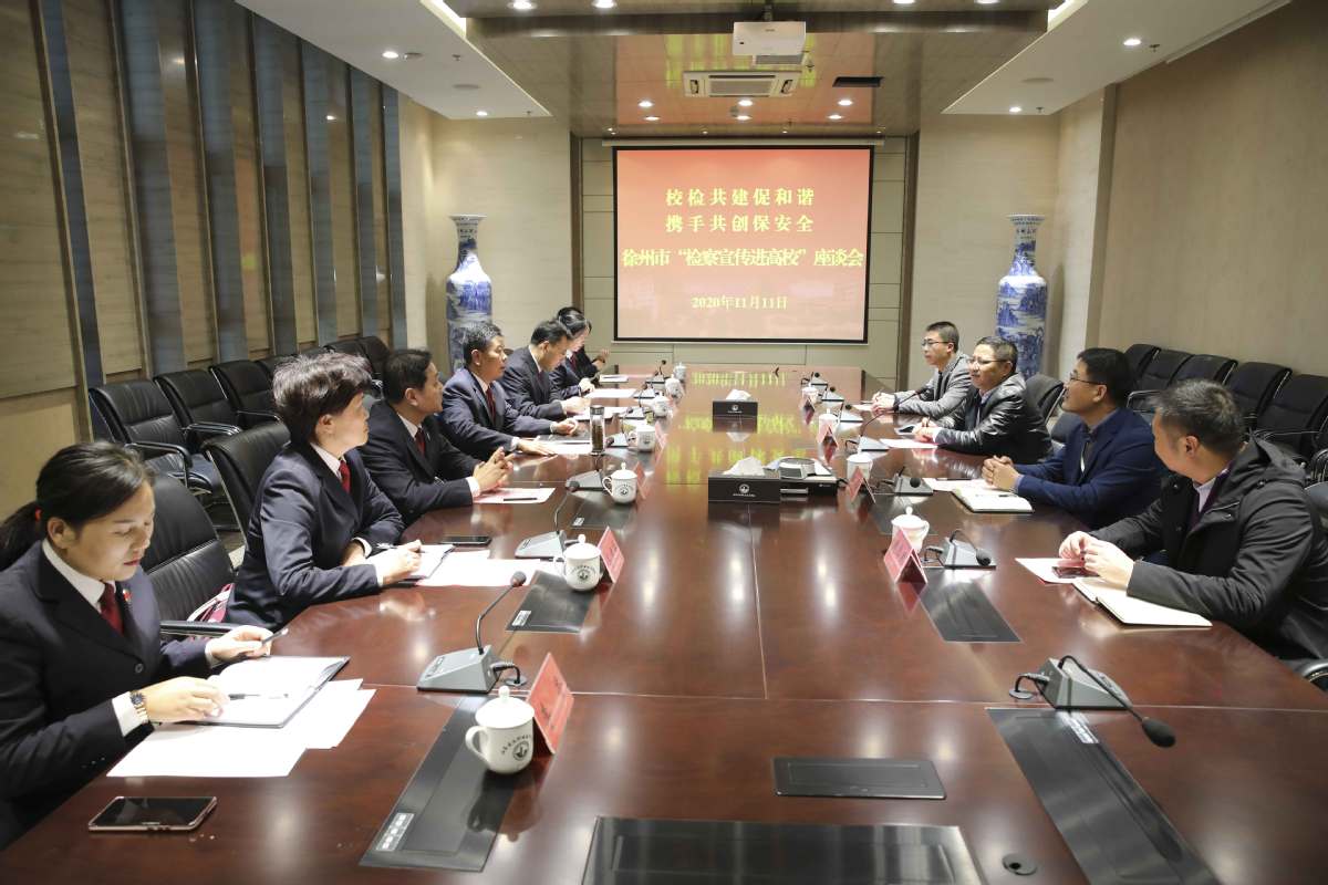 11月11日下午,我校与徐州市泉山区人民检察院开展“校检共建促和谐、携手共创保安全”共建活动。共建座谈会在学校图书馆会议室举行。徐州市人民检察院党组成员、副检察长韩卫东,泉山区人民检察院党组书记、检察长艾新平,我校副院长蒋兆峰出席活动。学工处、保卫处、团委相关负责人参加座谈。