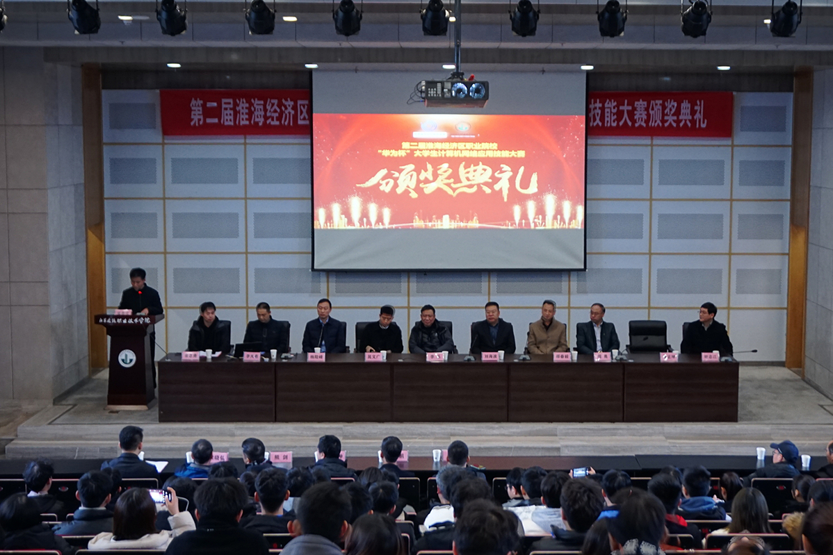 12月27日,第二届淮海经济区职业院校“华为”杯大学生计算机网络应用技能大赛在我校圆满落幕。我校副院长刘海波、徐州市教育局职教处处长李乐、徐州市工业和信息化局信息产业处处长郝春毅、徐州市人工智能学会会长周勇、徐州市软件行业协会秘书长叶志江、华为技术有限公司江苏政企副总经理晁文广、深圳市讯方技术股份有限公司副总裁杨险峰、江苏万和系统工程有限公司总经理余志勇等出席颁奖仪式。