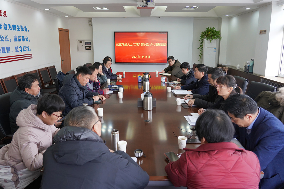 1月16日下午,我校召开民主党派人士与党外知识分子座谈会。院长沈士德教授,党委副书记梁惠,民革、民盟、九三学社、致公党、民建、无党派人士等代表同志参加了座谈会。会议由党委组织部、党委统战部部长汪玉静主持。