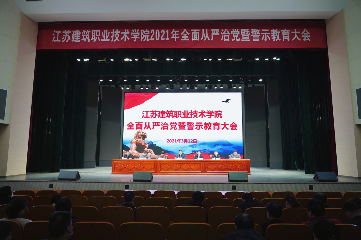 为深入贯彻十九届中央纪委五次全会精神,认真落实十三届江苏省纪委六次全会精神和全省教育系统全面从严治党工作视频会精神,3月12日下午,我校召开2021年全面从严治党暨警示教育大会。校党委书记孙进同志出席会议并讲话。院长、党委副书记沈士德同志主持会议。校纪委书记魏勇作纪检工作报告。校党委委员、纪委委员、全体副科级以上干部及全体党员参加会议。