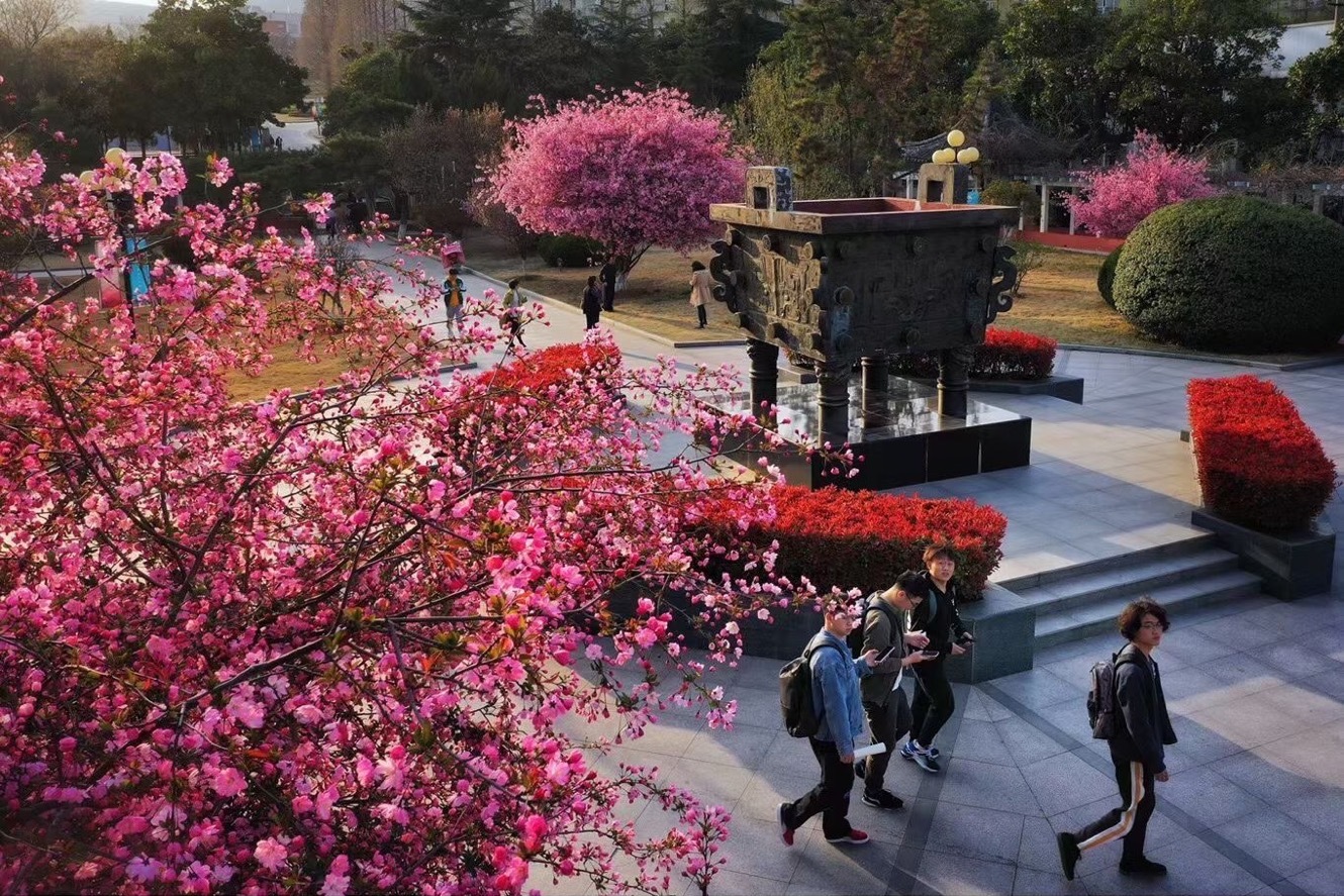 草长莺飞二月天,开云在线平台校园里的花儿竞相绽放,同学们一起在花的世界里尽情呼吸和成长。(供图:梁大庆 韩旭 杨欣若)