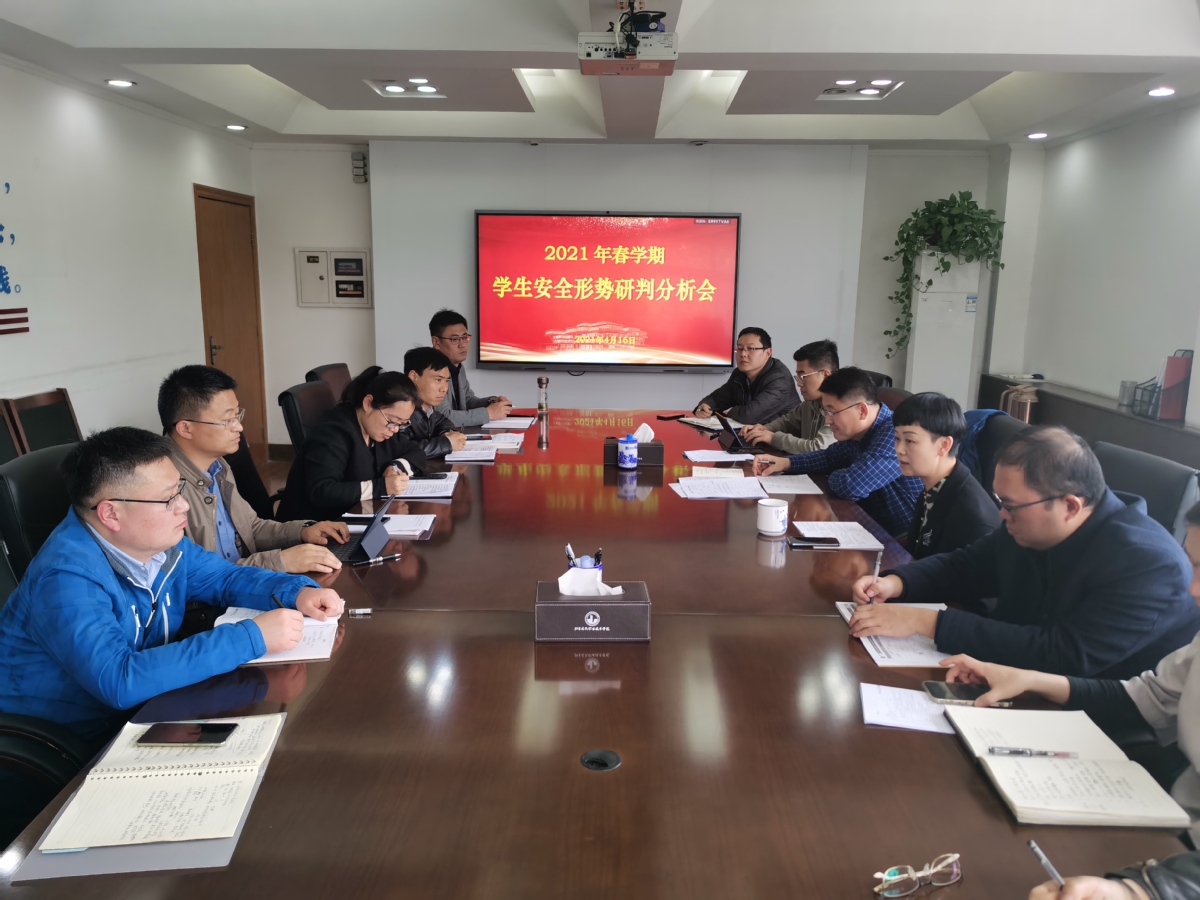4月16日下午,我校2021春学期学生安全形势研判分析会在第一会议室召开。党委副书记梁惠出席会议并讲话,学生处、教务处、保卫处负责同志及各二级学院党总支副书记参加会议。