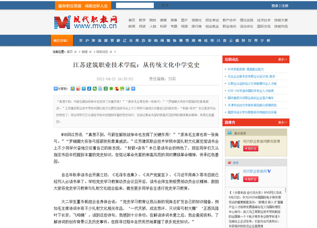 苏建院党委副书记梁惠说:“我们将党史学习教育与同学们感兴趣的礼射文化结合起来。比如礼射的读书会,不仅有传统经典,还有革命文化经典、社会主义先进文化经典。礼射是导向,学习是过程,育人是目的。用礼射引领学生开展党史学习教育,激发学生自主学习,切实做到学有特色、学出实效。”