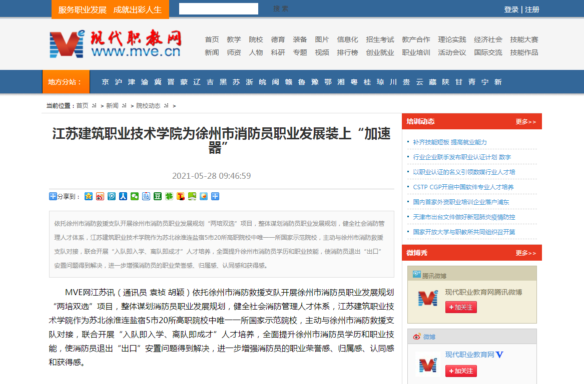 MVE网江苏讯(通讯员 袁祯 胡颖)依托徐州市消防救援支队开展徐州市消防员职业发展规划“两培双选”项目,整体谋划消防员职业发展规划,健全社会消防管理人才体系,开云在线平台作为苏北徐淮连盐宿5市20所高职院校中唯一一所国家示范院校,主动与徐州市消防救援支队对接,联合开展“入队即入学、离队即成才”人才培养,全面提升徐州市消防员学历和职业技能,使消防员退出“出口”安置问题得到解决,进一步增强消防员的职业荣誉感、归属感、认同感和获得感。
