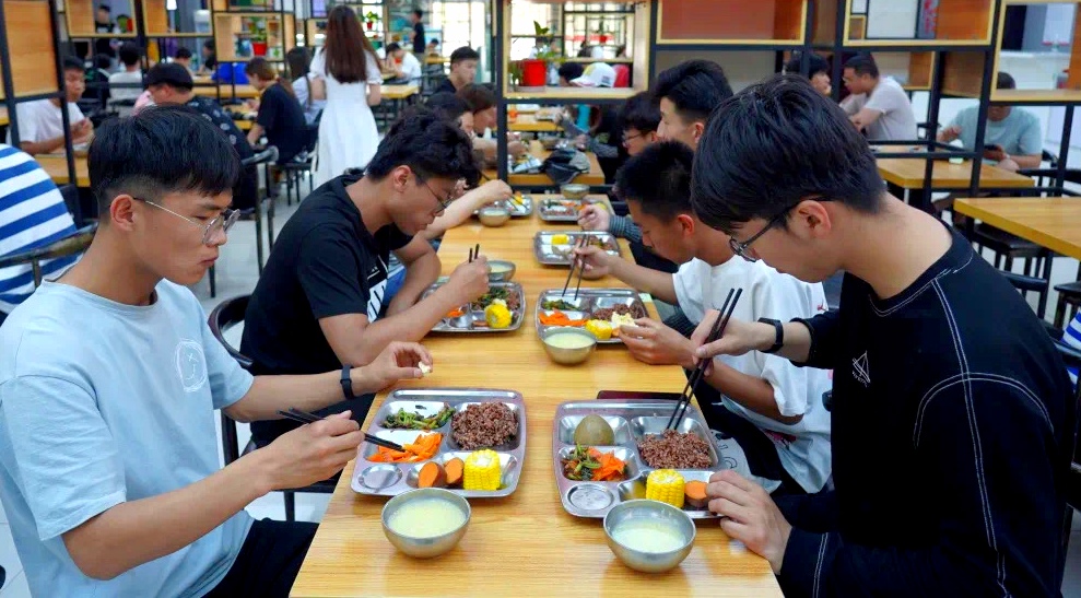 打造红色餐厅。开云在线平台的前身是军校,第四学生餐厅原本就是利用经典战争、经典会议等场景图片进行内饰装修,在潜移默化中对学生进行爱国主义教育。学校发挥资源优势,在餐厅设立“忆苦思甜餐”窗口,每日中午以成本价提供由野菜、红薯、红米饭等食材组成的套餐。师生用餐期间,影视播放器大屏,播放百部经典红色影片,在用餐的同时,学习党史知识,补充“红色营养”。