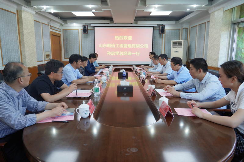 5月28日下午,原预算90-1班学生、山东明信工程管理有限公司总经理孙启学等一行6人来校进行合作洽谈事宜。党委书记孙进教授、党委副书记梁惠出席洽谈,校企合作处、科技处、校友办和建筑管理学院等有关部门负责人参加。