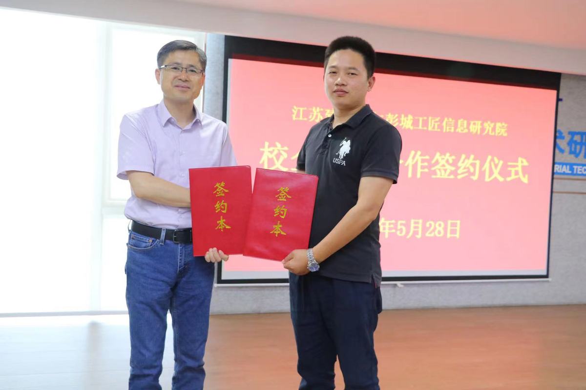 5月28日下午,在前期多次洽谈与沟通的基础上,院长沈士德教授、副院长曾凡远带队,实验实训管理处相关负责人随行,赴徐州市产业技术研究院与彭城工匠信息科技研究有限公司签订校企战略合作框架协议。徐州市产业技术研究院书记孙影、彭城工匠信息科技研究有限公司总经理潘飞等参加签约仪式。