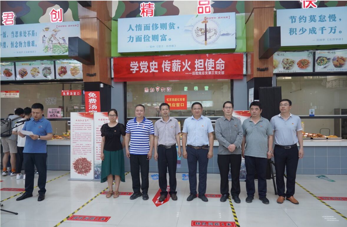 5月31日,在第四学生餐厅举办了党史学习教育体验系列活动启动仪式,副院长蒋兆峰,组织部、宣传部、校团委和后勤管理服务中心等部门领导,后勤管理服务中心党总支第三党支部全体成员、学生代表等参加了此次活动。