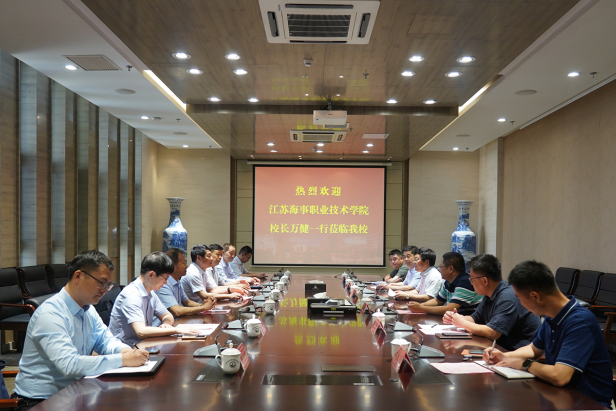 6月4日上午,江苏海事职业技术学院校长万健一行7人来我校进行调研考察。院长沈士德教授、副院长蒋兆峰与来访客人在图书馆会议室进行座谈交流。党政办、政策研究室、后勤管理服务中心、信电工程学院等部门负责人参加了座谈。