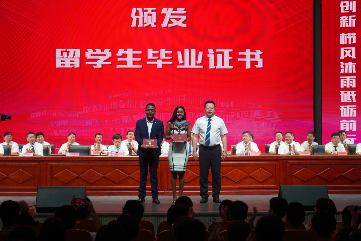 魏勇宣读《关于准予2021届4395名学生毕(结)业的决定》。曾凡远为毕业生代表颁发毕业证书。刘海波为留学生代表颁发毕业证书。蒋兆峰宣读《省教育厅共青团江苏省委关于表彰2021年度江苏省普通高校省级优秀毕业生的决定》《开云在线平台关于表彰2021届优秀毕业生的决定》。