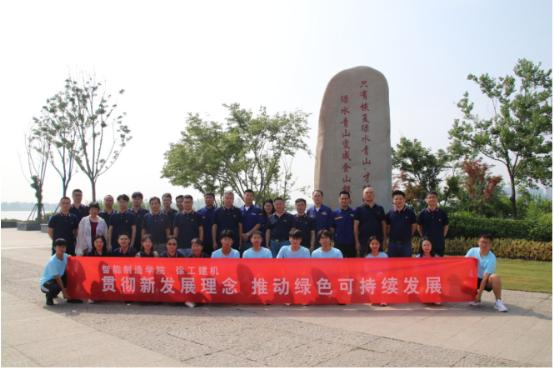 在徐州市贾汪区潘安采煤塌陷区整治工程神农码头,江苏建院师生、徐工建机员工们通过听讲解、看照片、看湖景,亲身感受曾经荒芜的采煤塌陷区,经过生态修复、景观构建,已经变成了风景如画的湿地景区,更加深入理解了“绿水青山就是金山银山”的发展理念。师生、员工们表示要贯彻新发展理念,坚定不移地走生产发展、生活富裕、生态良好的文明发展道路。