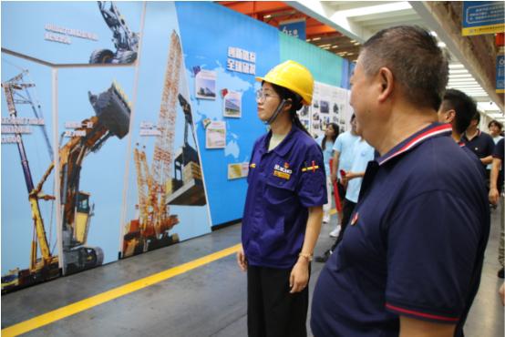 在徐工集团重型机械有限公司,师生们学习了徐工集团的历史和现阶段在国家开发、智能制造等方面取得的进展,学习了企业继承红色基因、适应时代发展取得的成就。在起重机底盘装配车间,师生一起学习智能生产线,了解先进的数字化装配工艺,观看工业互联网大数据平台操作演示,参观XCA220型全地面轮式起重机,切身感受装备制造业在制造业中的脊梁地位。在与公司劳动模范、技术能手交流中,师生们为他们的爱岗敬业、拼搏奉献的精神所鼓舞,又一次受到了新时代劳模精神和工匠精神的洗礼。