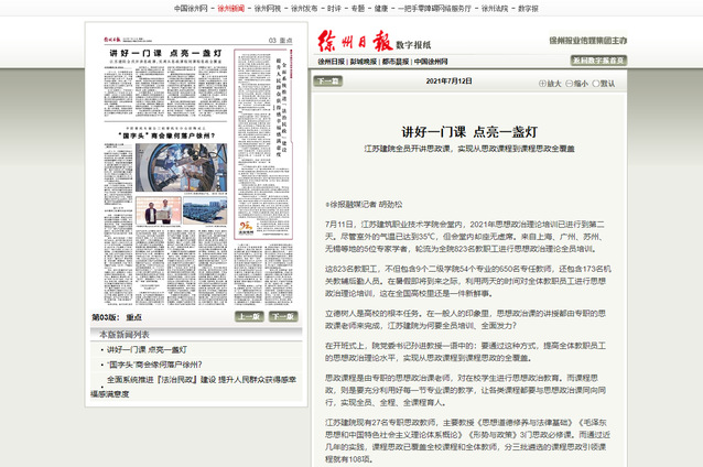 立德树人是高校的根本任务。在一般人的印象里,思想政治课的讲授都由专职的思政课老师来完成,江苏建院为何要全员培训、全面发力?