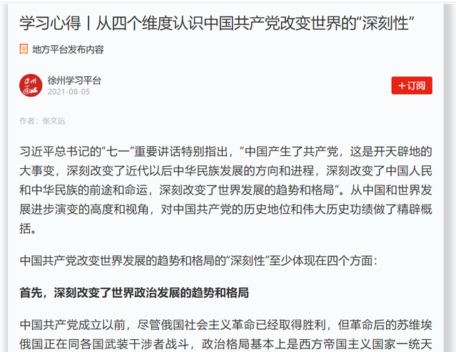 习近平总书记的“七一”重要讲话特别指出,“中国产生了共产党,这是开天辟地的大事变,深刻改变了近代以后中华民族发展的方向和进程,深刻改变了中国人民和中华民族的前途和命运,深刻改变了世界发展的趋势和格局”。从中国和世界发展进步演变的高度和视角,对中国共产党的历史地位和伟大历史功绩做了精辟概括。