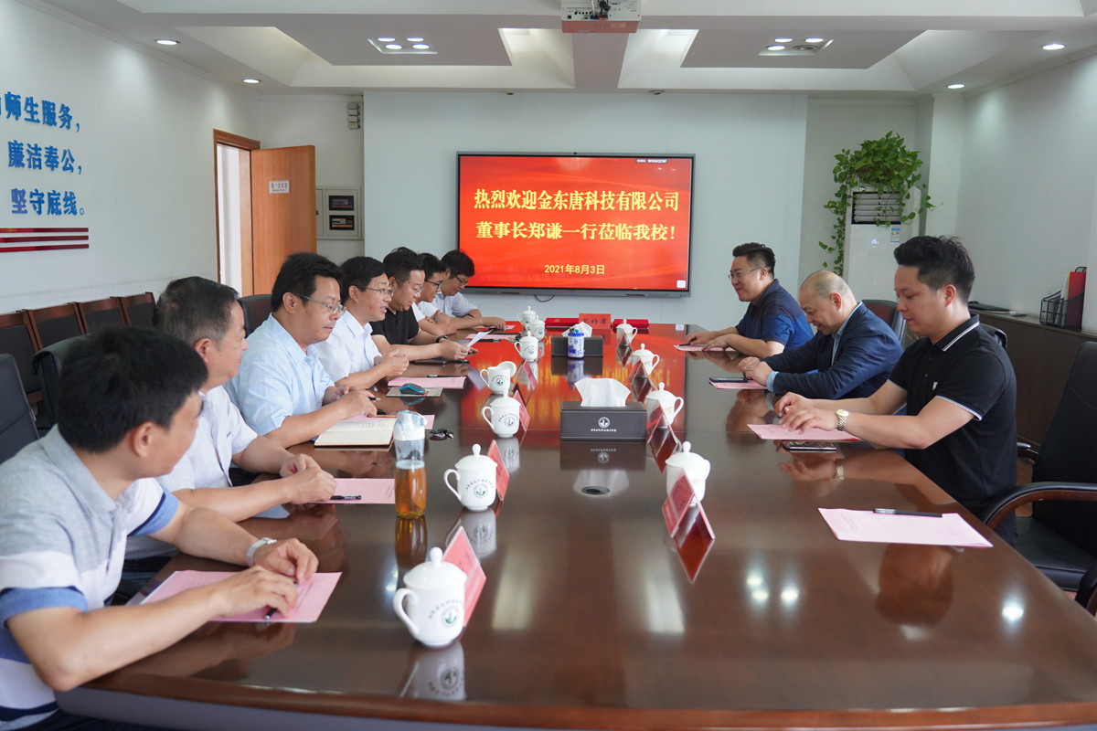 签约仪式上,沈士德向郑谦一行表示热烈欢迎,并详细及介绍了学校的历史沿革、人才培养及办学情况。郑谦介绍了上海金东唐科技有限公司主营业务及发展情况。签约仪式后双方就彼此关心的问题开展了深入交流。