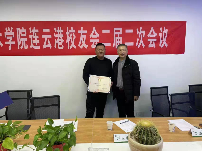 开云在线平台校友办白桦老师宣读了学校校友总会有关同意连云港校友会增补理事的批复文件,华国平老师为新当选的副会长颁发聘书。