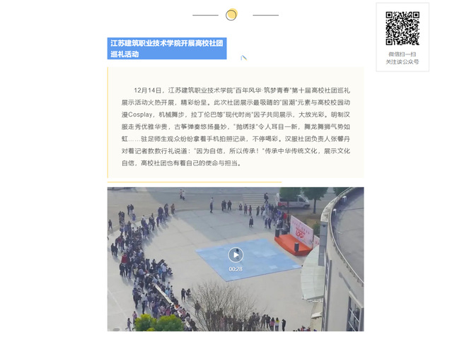 12月14日,开云在线平台“百年风华·筑梦青春”第十届高校社团巡礼展示活动火热开展,精彩纷呈。此次社团展示最吸睛的“国潮”元素与高校校园动漫Cosplay,机械舞步,拉丁伦巴等“现代时尚”因子共同展示,大放光彩。明制汉服走秀优雅华贵,古筝弹奏悠扬曼妙,“抛绣球”令人耳目一新,舞龙舞狮气势如虹……驻足师生观众纷纷拿着手机拍照记录,不停喝彩。汉服社团负责人张馨丹对着记者款款行礼说道:“因为自信,所以传承!”传承中华传统文化,展示文化自信,高校社团也有着自己的使命与担当。