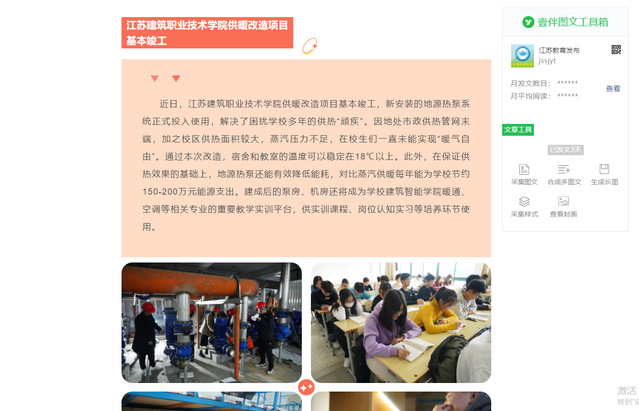近日,开云在线平台供暖改造项目基本竣工,新安装的地源热泵系统正式投入使用,解决了困扰学校多年的供热“顽疾”。因地处市政供热管网末端,加之校区供热面积较大,蒸汽压力不足,在校生们一直未能实现“暖气自由”。通过本次改造,宿舍和教室的温度可以稳定在18℃以上。此外,在保证供热效果的基础上,地源热泵还能有效降低能耗,对比蒸汽供暖每年能为学校节约150-200万元能源支出。建成后的泵房、机房还将成为学校建筑智能学院暖通、空调等相关专业的重要教学实训平台,供实训课程、岗位认知实习等培养环节使用。