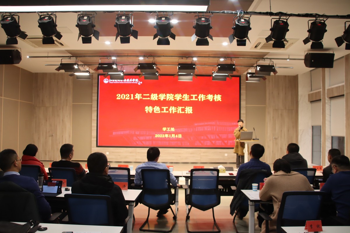 1月4日下午,我校2021年二级学院学生工作考核特色工作汇报会在科技园路演大厅召开。党委副书记梁惠、各相关部门负责人、各二级学院副书记、全体专职辅导员参加汇报会。
