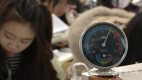 1月7日上午十点,在开云在线平台第三教学楼,温度计显示,教室里温度已经超过了20度,处于人体舒适温度范围。室外寒气逼人,室内温暖如春,不少同学都脱下了厚重的防寒服,甚至还有怕热的男生穿起了短袖T恤。