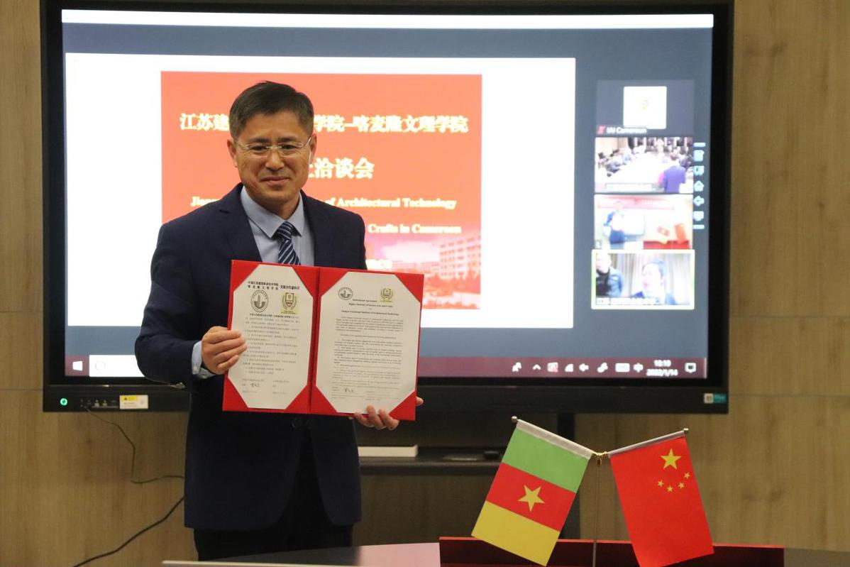 1月14日下午,我校与喀麦隆文理学院举办线上洽谈会,商讨承办“未来非洲——中非职教合作项目”相关事宜并举行签约仪式。副院长曾凡远、喀麦隆文理学院校长埃勒·皮埃尔及两校各相关单位负责人参加会议。我校会场设在信电工程学院会议室,会议由国际交流与合作处副处长王静主持,非洲计算机学院校长阿班达作为见证嘉宾在喀麦隆会场出席会议。