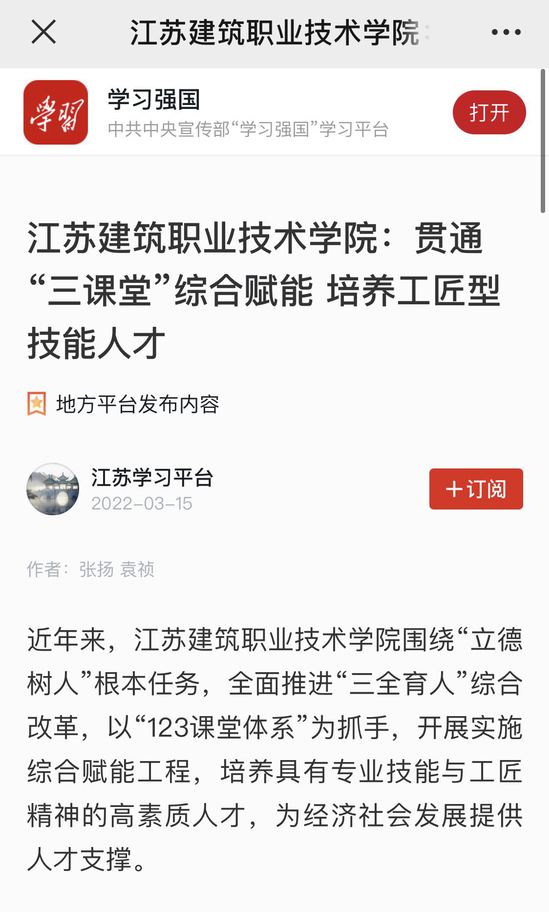 成长有导师,成才有指引。学校通过聆听解惑、心理辅导、专业辅导、精神引领帮助学生解决大学期间心理、学习、生活、就业等实际问题,为学生提供学业职业生涯规划指导,促进大学生全面成长。建筑建造学院聘请全国劳模、江苏广兴集团有限公司首席技师沈春雷,工匠大师、全国优秀农民工、龙信集团十六分公司技术员戴祝泉担任学生成长成才导师,开展工匠大师面对面、劳模精神进校园活动,推进大学生思想政治引领和劳动教育深入开展。