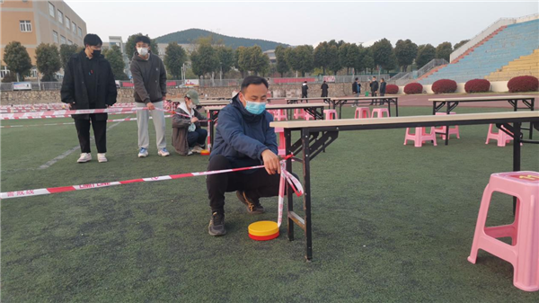 4月3日凌晨4时,值班室里冯占毅的手机响了,根据疫情防控要求,闭环内的所有师生需要在这天做一次全员核酸检测,一早就要开始,在此之前需要完成场地布置。时间紧迫,冯占毅顾不上休息,连夜集结力量开始布置西操场核酸检测场地。安排安保流程、拉警戒线、部署点位,冯占毅带队用很短的时间高效完成了相关准备工作,保障了后续全员检测工作的安全、顺利、流畅。