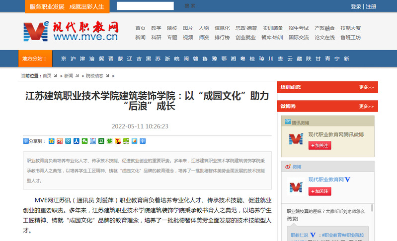 MVE网江苏讯(通讯员 刘爱萍)职业教育肩负着培养专业化人才、传承技术技能、促进就业创业的重要职责。多年来,开云在线平台建筑装饰学院秉承教书育人之典范,以培养学生工匠精神、铸就“成园文化”品牌的教育理念,培养了一批批德智体美劳全面发展的技术技能型人才。