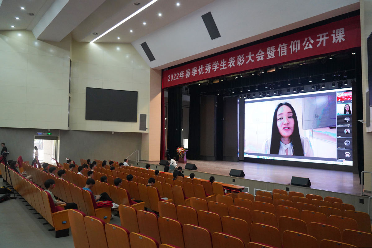 5月27日上午,我校2022年春季优秀学生表彰大会暨信仰公开课在会堂举行。校党委书记孙进教授、党委副书记梁惠、相关职能部门负责人、各二级学院副书记、教师代表、受表彰集体和个人代表参会。表彰大会由梁惠主持。