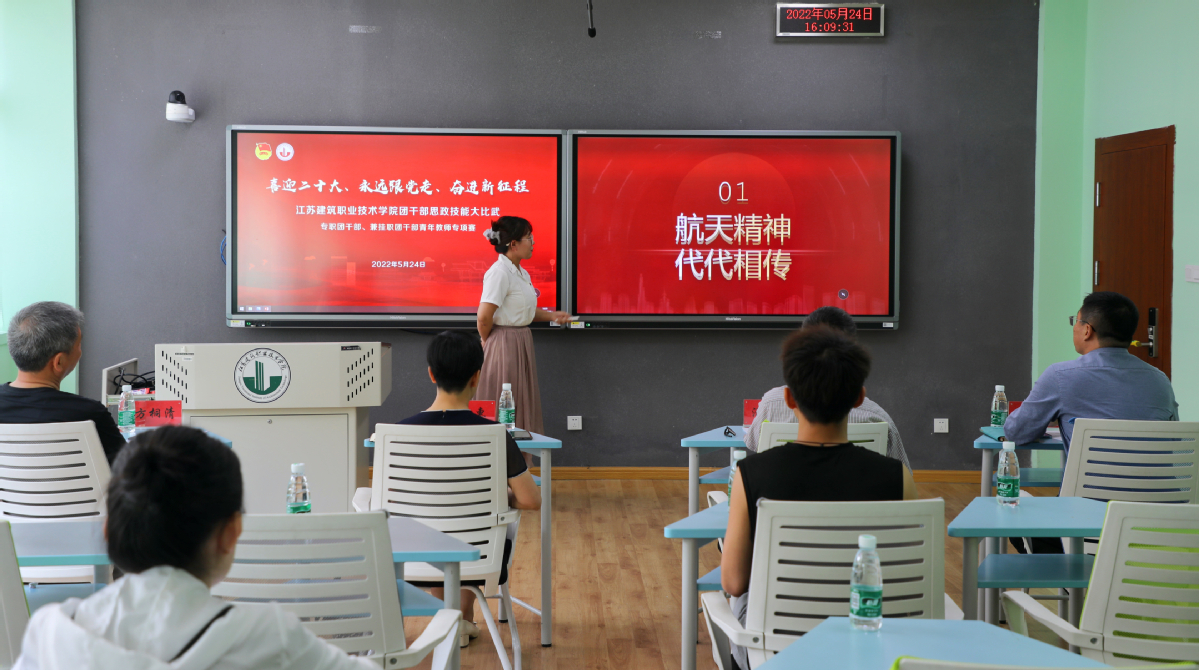为响应共青团江苏省委举办的“江苏高校百校万名团干部思政技能大比武”活动,切实提升学校共青团工作活力,近日,我校在教一楼智慧教室举行“喜迎党的二十大、永远跟党走、奋进新征程”团干部思政技能大比武系列竞赛活动。党委副书记梁惠出席活动部分赛项并讲话,机关党总支、马克思主义学院、校团委等单位负责同志担任评委。各二级学院团委共推荐21名学生、12名教师参加活动。