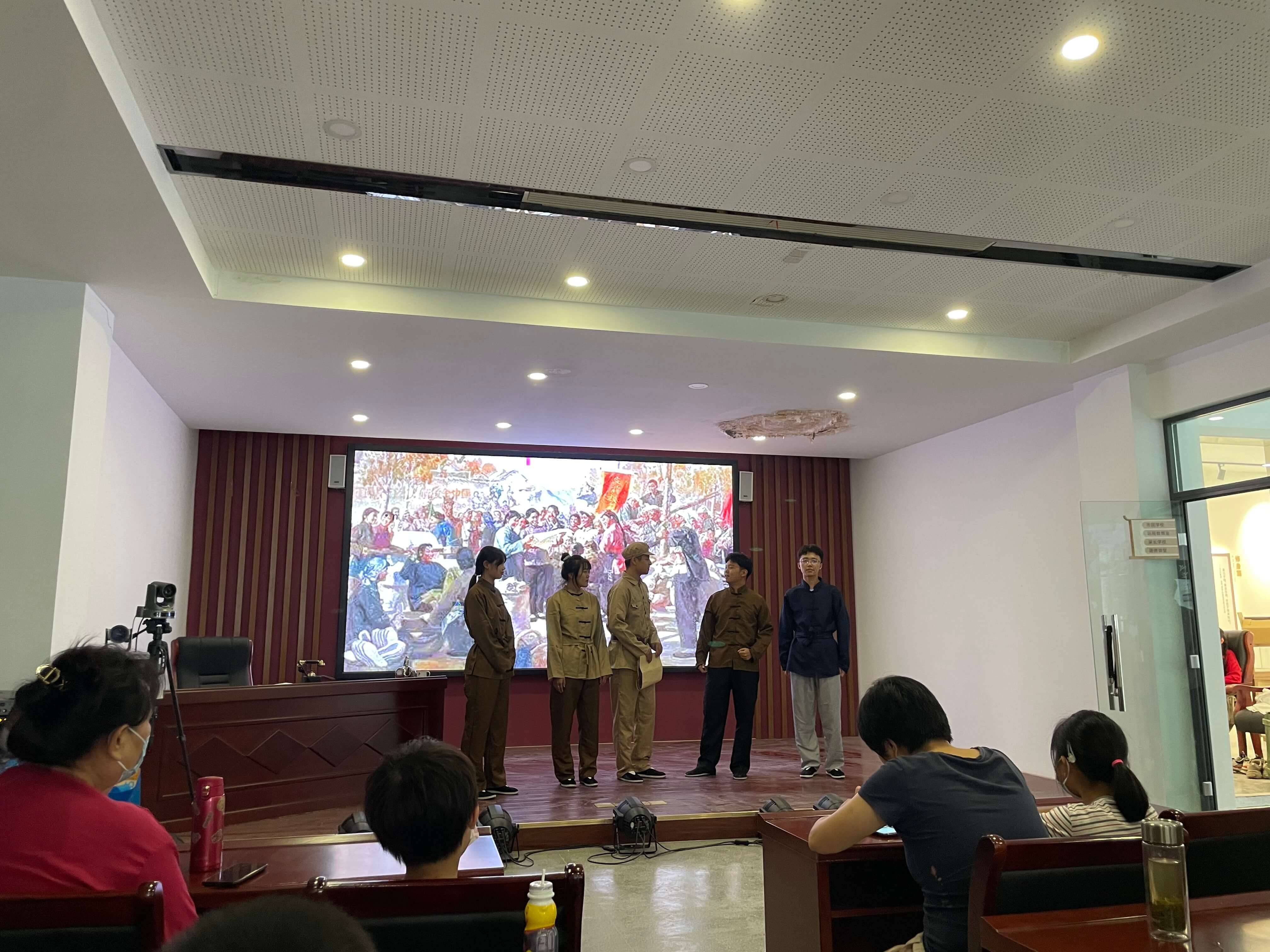 沉浸式表演作为近年来新兴的表演方式,具有可使观众们身临其境,舞台化有形为无形的特点,这种新潮的表演方式使观众们全方位、多角度,更加立体地感受其中。红色浸初心实践团沉淀两年,将红色基因库与沉浸式表演相结合,走进基层社区,为社区居民带来一次党史学习教育洗礼。