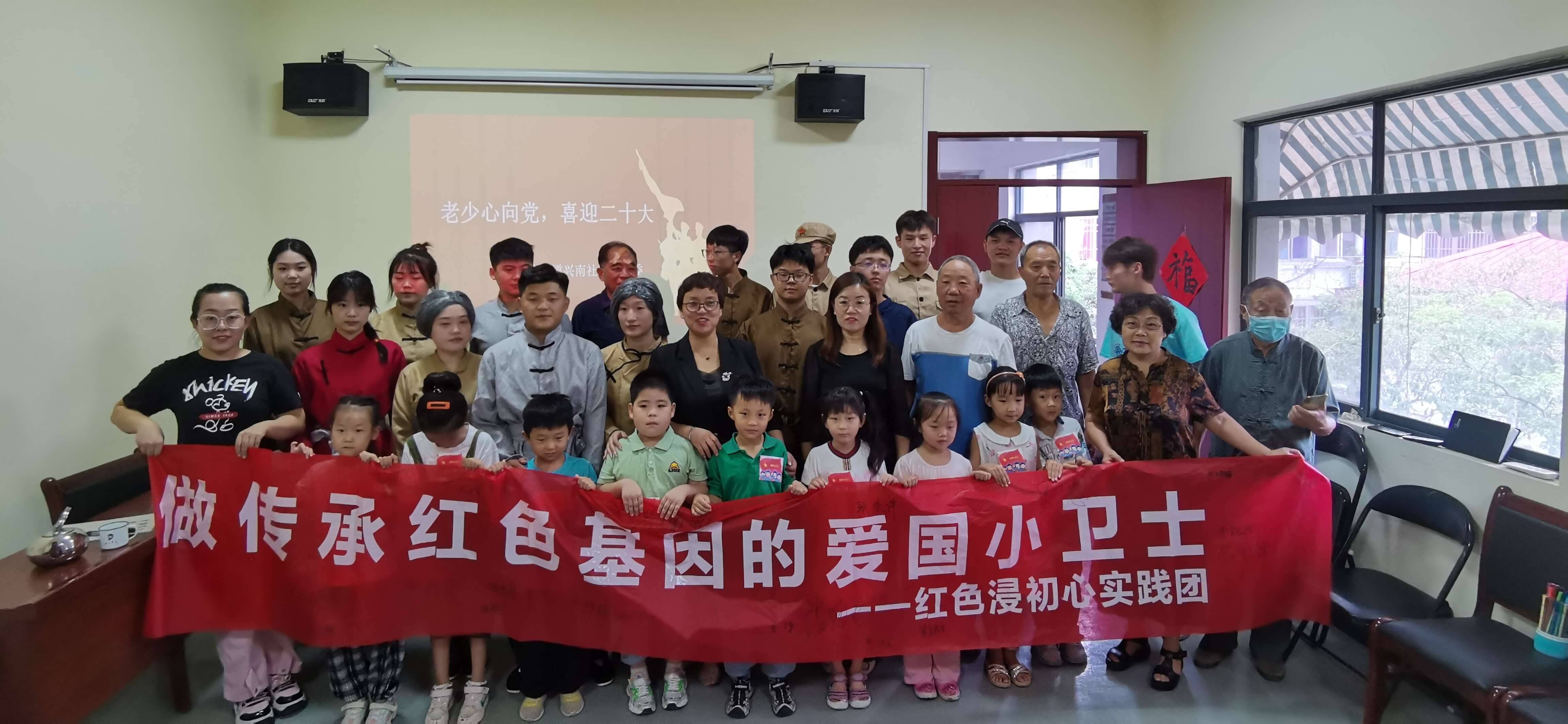 为了响应实践团“红色浸初心、星火永相传”的活动宗旨,特邀社区儿童、退休老党员参与并观看剧目,在社区的活动室里,团员成员们拿上道具,进行布景,以饱满的热情投入到演出当中,棉布袋子的故事、民站的展现、民工的工作场景以及许多支前路上的真实事迹被刻画与塑造,让在场的孩子、老人在同学们质朴的表演下重温淮海战役上可爱的、令人尊敬的人民群众们的伟岸身影,为观众们提供一场活灵活现的党史学习。表演结束后,团队成员为儿童贴上红色小卫士勋章,邀请老党员们为传承红色文化签名,并与在场老党员们沟通交流有关表演内容与历史重现上的改进与创新。