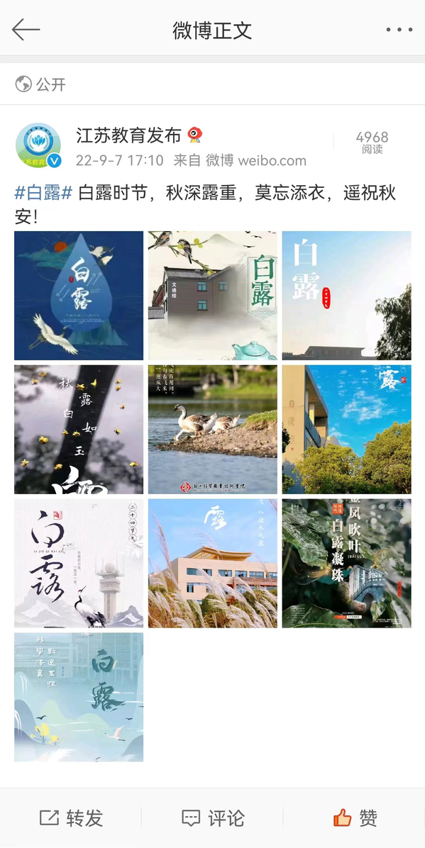 #白露# 白露时节,秋深露重,莫忘添衣,遥祝秋安!