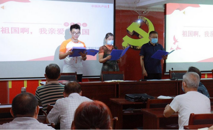 宣讲最后,老党员们带领宣讲团成员们重温庄严的入党宣誓,声音铿锵、句句千钧。通过开设红色资源宣讲活动,将党史学习教育下沉至社区,宣讲团成员结合自身专业知识,将党的政策、道德典范、乡风文明、文艺交流等内容搬上宣讲舞台。