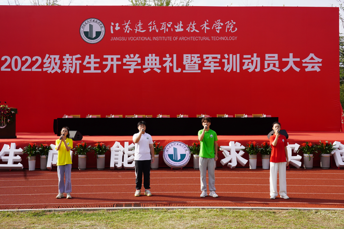典礼上,在校生代表信电工程学院网络20-1班刘迪,新生代表经济管理学院物流22-1班夏楚尧,教师代表建筑管理学院博士唐盼,校友代表原建筑建造学院建工06-3班学生、现中国核工业第二二建设有限公司华东区域江苏公司经理胡继通先后上台发言。