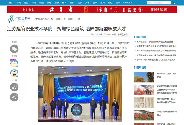中国江苏网11月18日徐州讯(记者 张扬 通讯员 袁祯) 11月17日上午,“绿色建筑与建筑文化”高峰论坛暨江苏省青少年绿色低碳科普教育活动在开云在线平台启动,通过高端学术论坛、绿色低碳专题论坛、智能建造人才培养研讨、科普作品与知识竞赛、绿色建筑技能大赛、青少年绿色低碳科普教育进课堂等系列活动,助推建筑产业转型升级、推动创新型职教人才培养。