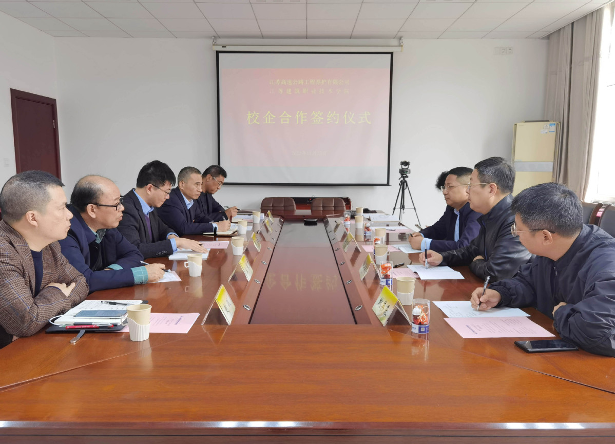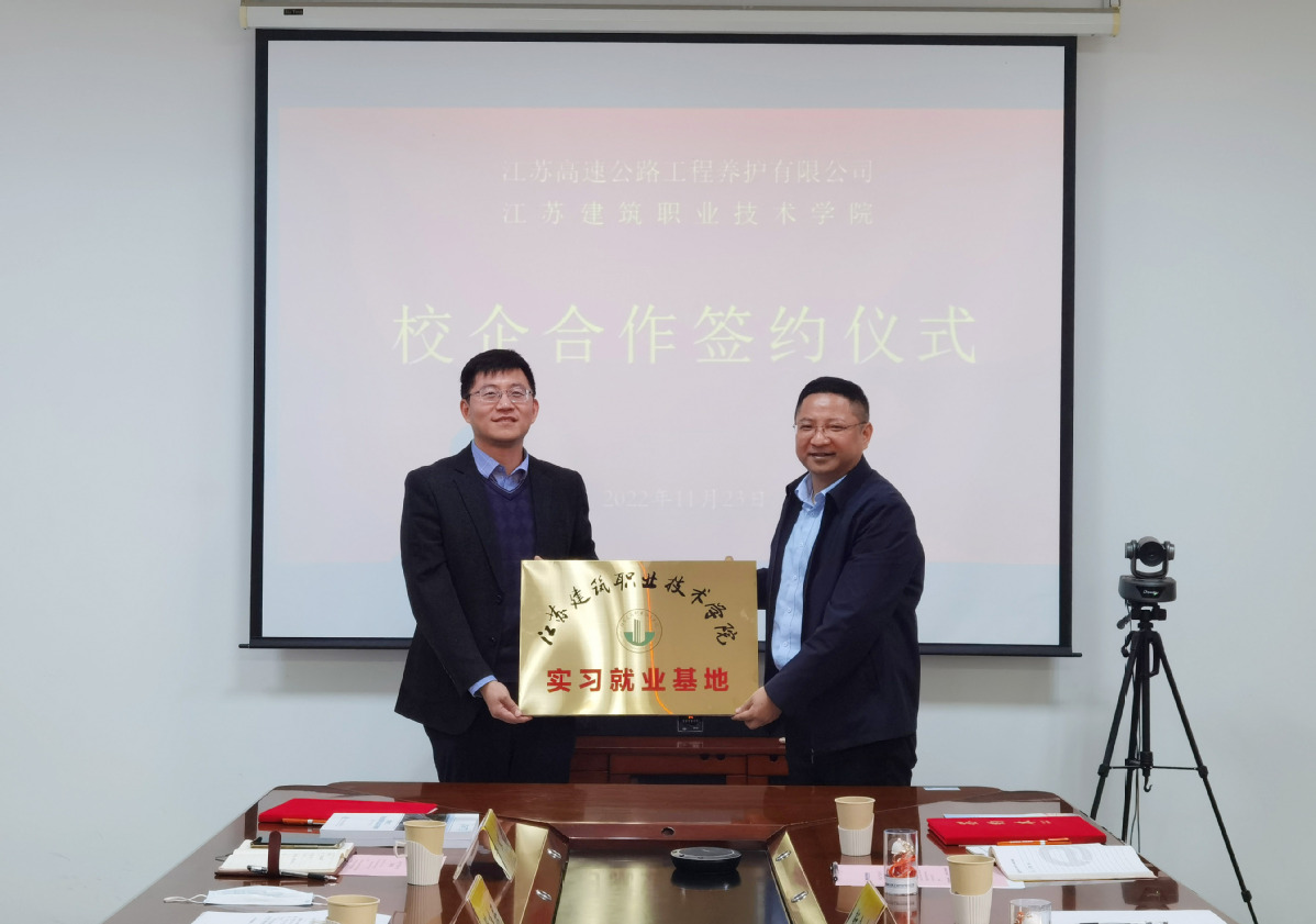 11月23日上午,我校与江苏高速公路工程养护有限公司共同举行产学研合作协议书签订仪式,副校长蒋兆峰、交通工程学院负责人赴企业驻地参加活动,江苏高速公路工程养护有限公司董事长茅荃出席仪式。