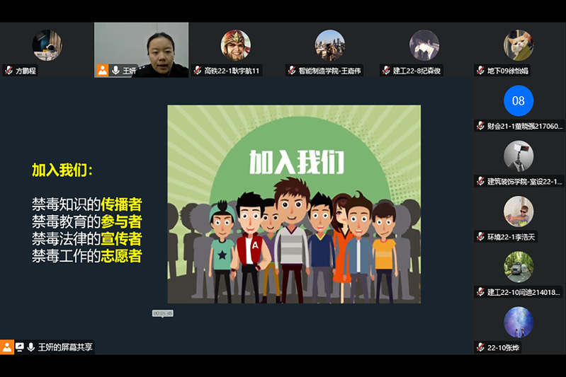 活动采用线上线下结合方式开展。线上方面,市禁毒办工作人员进行了防艾、禁毒知识线上宣讲,我校300余名学生干部聆听了讲座,后续将利用团课、班会课等平台持续宣传。线下方面,学校积极依托各类载体,通过播放禁毒防艾公益短片、张贴宣传海报、悬挂标语横幅、发放主题手册等方式,宣传禁毒防艾同伴教育、禁毒防艾志愿服务等内容。活动收效良好,得到了师生们的广泛参与。